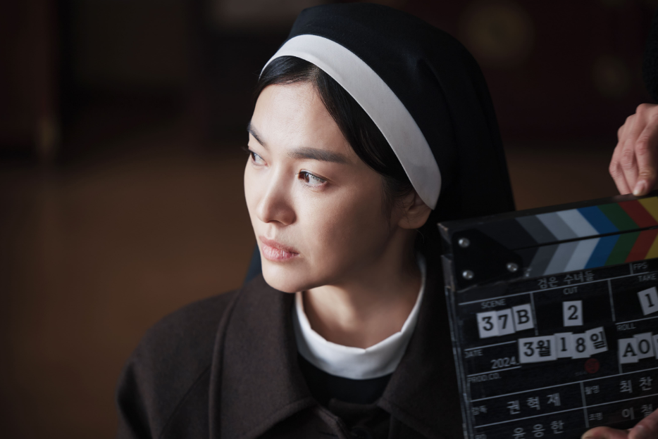 '검은수녀들'은 1980년대 한국의 작은 마을을 배경으로 펼쳐집니다. 악령에 사로잡힌 소년 희준(문우진)을 구하기 위해 두 수녀가 금기된 구마 의식에 도전하는 이야기입니다.유니아 수녀(송혜교)는 희준의 몸에 12형상 중 하나의 악령이 숨어들었다고 확신합니다.