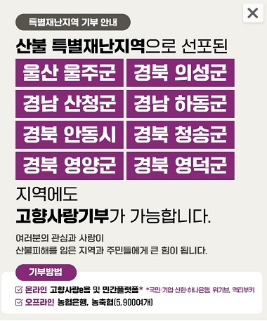 의성군, 안동시 메인-고향사랑e음 홈페이지에서 확인 하세요.