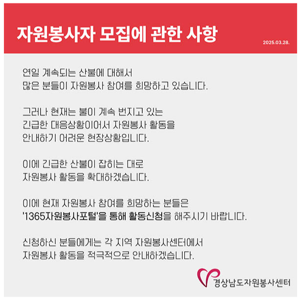 경북 의성, 안동, 청송, 영덕, 산청, 울산 산불 자원봉사, 어떻게 참여할 수 있을까?