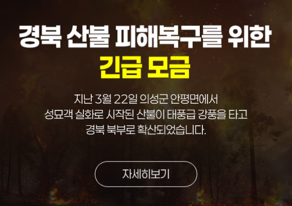 의성에서 3월 22일 시작된 산불은 강풍을 타고 안동, 청송, 영덕 등으로 번졌어요. 약 1만 5천 헥타르(ha)의 산림이 피해를 입었고, 이재민은 6천 명이 넘는다고 합니다. 고운사 같은 소중한 문화재도 잃었죠. 소방관들이 밤낮으로 진화 작업을 했고, 오늘 오후에 모두 진압 되었다는 소식이 전해지고 있습니다. 아직 진화 작업이 진행 중이라 현장 봉사는 제한적입니다.