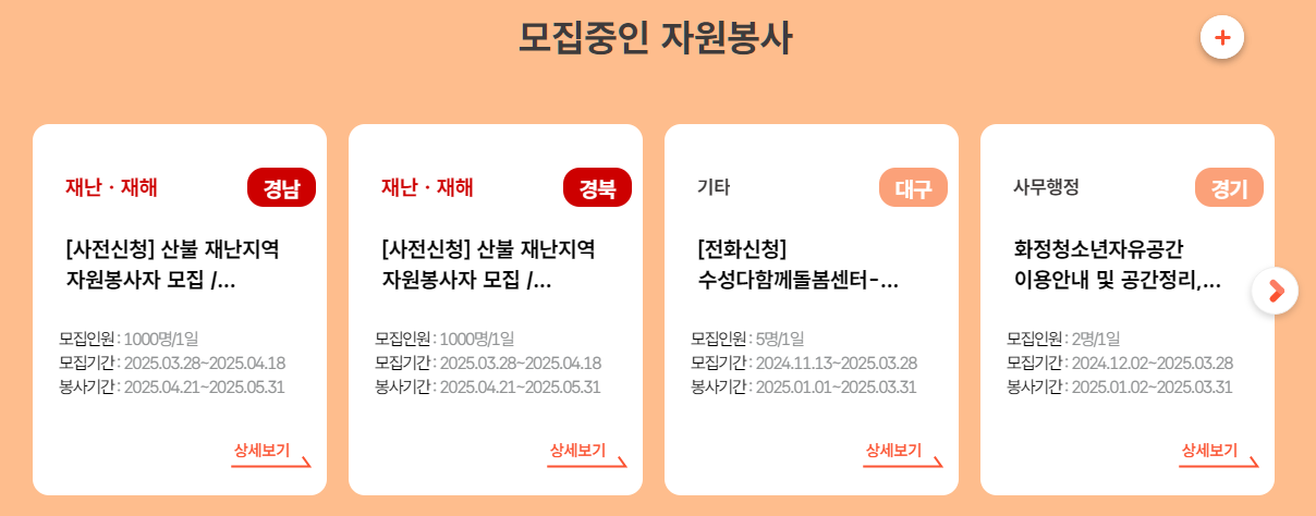 1365 자원봉사포털 에 접속해서 '경북'이나 '산청'으로 검색해보세요. 회원가입 후 신청할 수 있으니 미리 준비해 두는 걸 추천합니다!