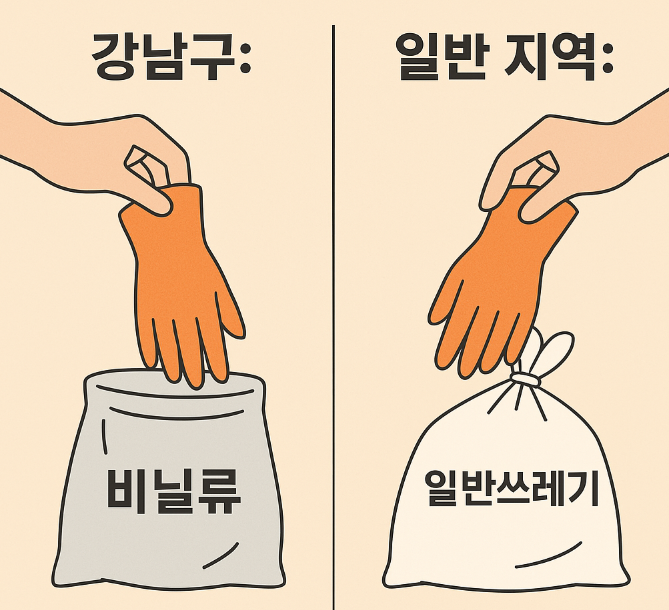 서울 강남구에서는 고무장갑을 ‘비닐류’로 분리배출하지 않으면 과태료 10만 원을 부과하고 있습니다. 하지만 전국 대부분의 지자체에서는 고무장갑을 일반쓰레기, 즉 종량제 봉투에 넣도록 안내하고 있죠.