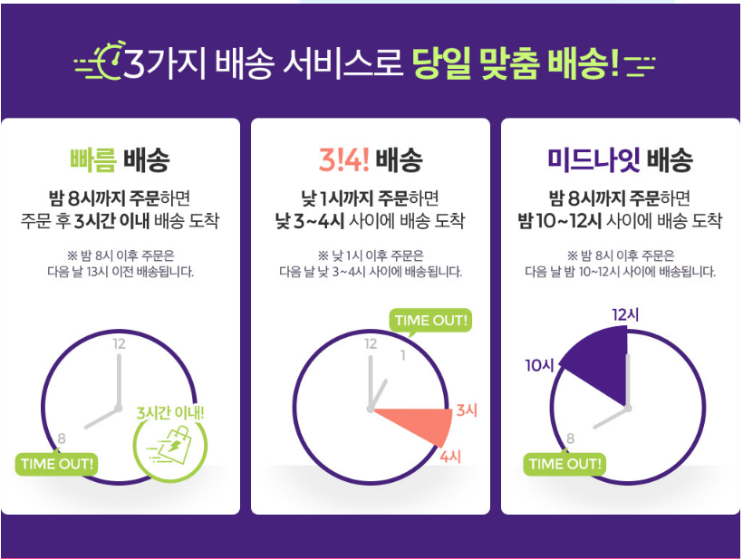 • 낮 1시 이전 주문: 오후 3시,4시쯤 도착