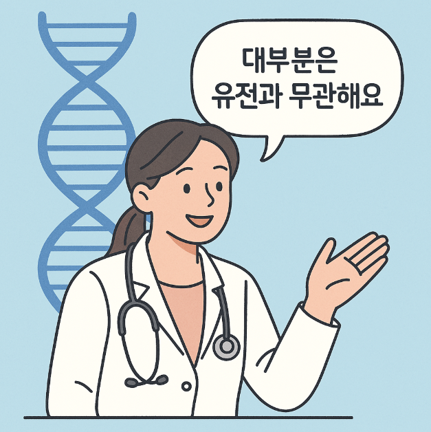 | 유전 가능성 | 대부분 비유전성, 일부 전좌형은 가능성 있음 |