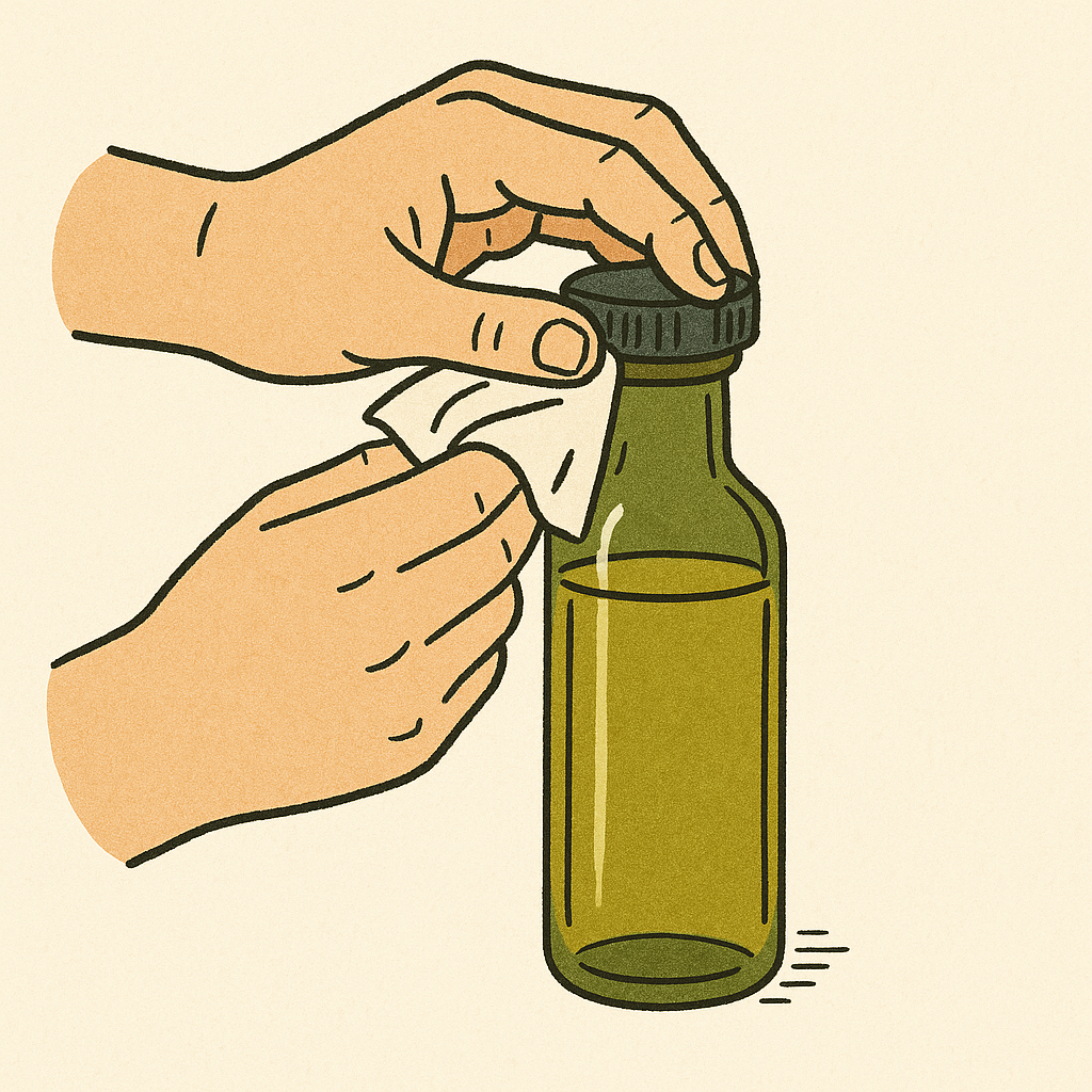 → 사용 후 바로 뚜껑을 닫고, 병목에 묻은 기름은 닦아주세요. 산화 속도를 줄일 수 있어요.