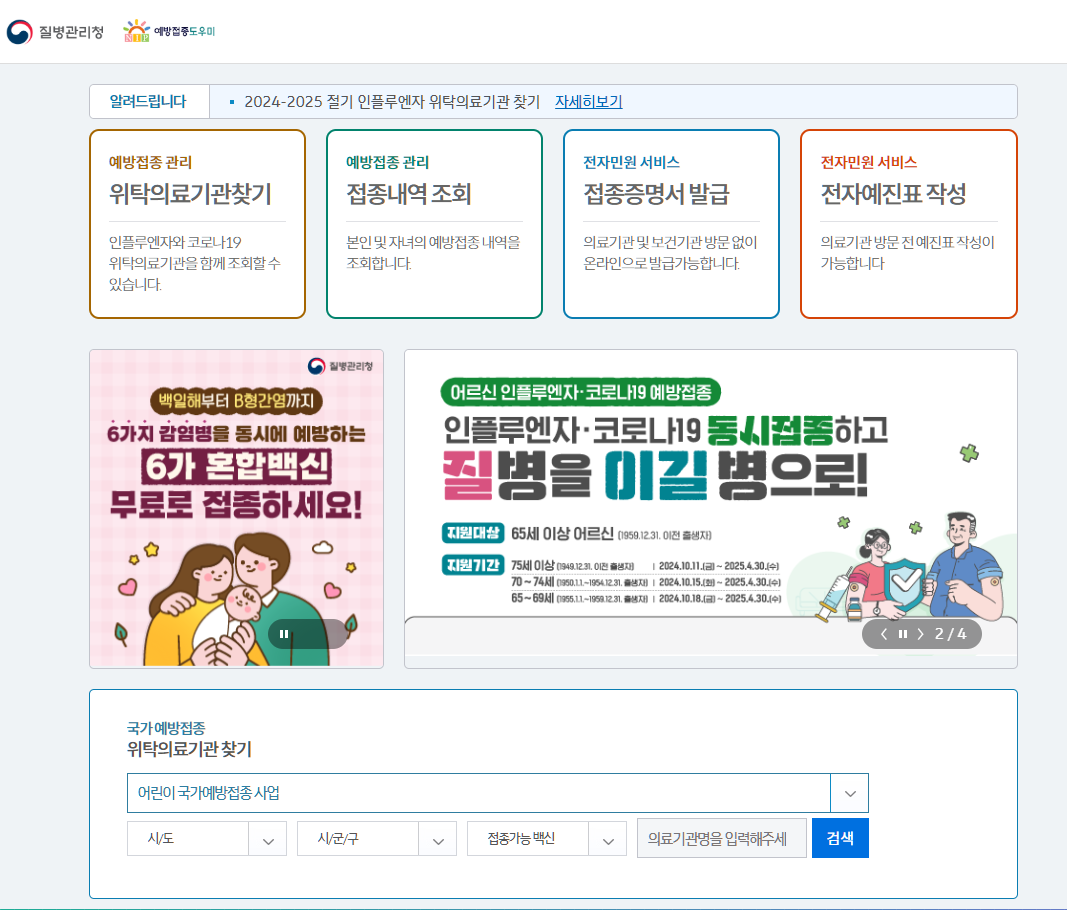 1. 질병관리청 ‘예방접종도우미’ 사이트 조회