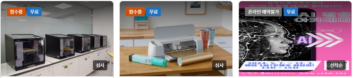 3D 프린ㅌ터, 비닐커터, AI 활용 아카데미, 레이저커터, CHAT GPT와 함께 인공지능 AI완전정복, AI 취업/창업교실