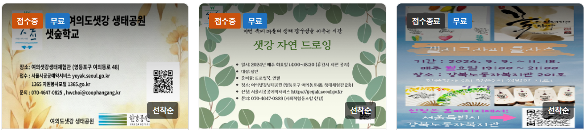2024.11.04 - [정책지원정보] - 서울시 공공서비스 예약 : 문화체험 참여하기서울시는 시민들을 위한 다양한 교육 강좌를 제공하고 있으며, 이러한 강좌들을 편리하게 예약할 수 있는 서울 공공서비