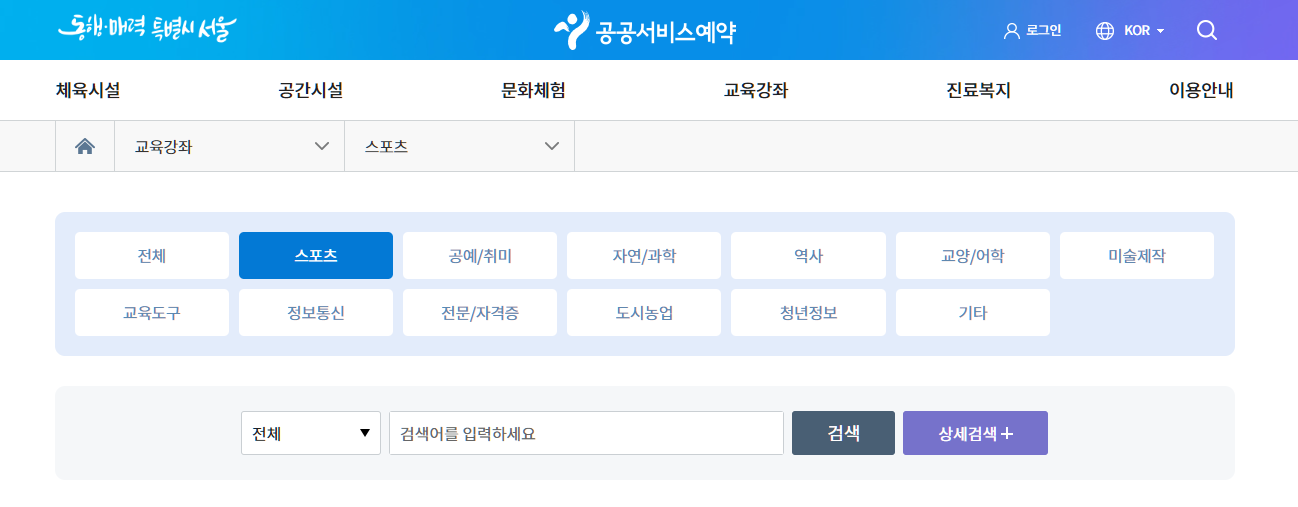 서울시 공공예약서비스 교육강좌