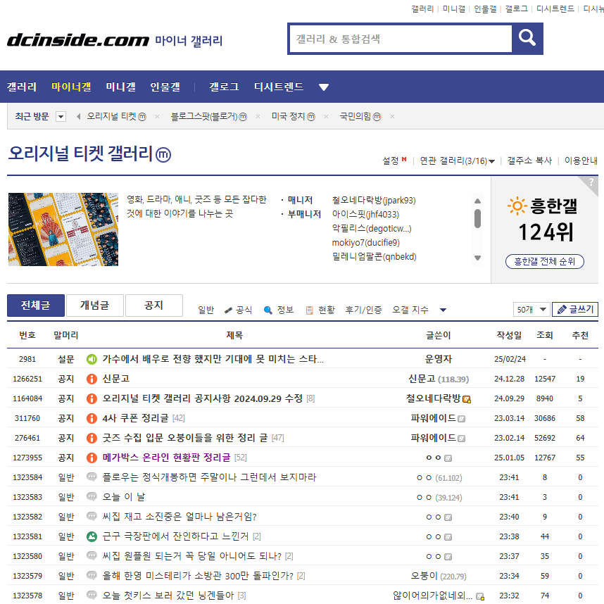 요즘 영화, 드라마, 애니메이션 팬들 사이에서 핫한 '오리지널 티켓 갤러리'를 알고 계신가요? 이곳은 디시인사이드의 마이너 갤러리 중 하나로, 다양한 오리지널 티켓과 굿즈를 수집하고 정보를 나누는 커뮤니티입니다.