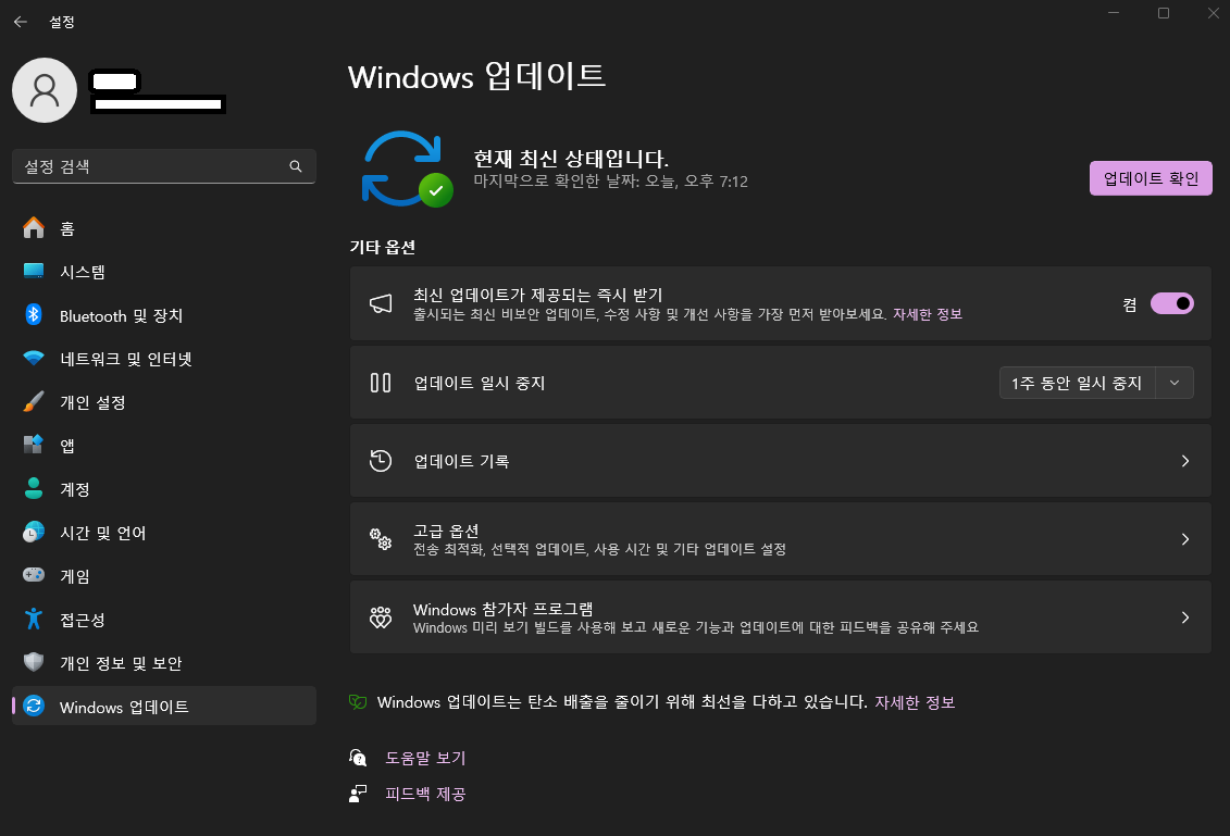 1. 윈도우 업데이트 기능 이용하기 (가장 쉬운 기본 방식)