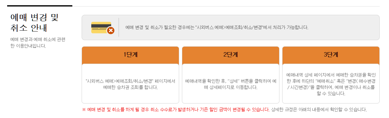 - 시간 변경: 기존 예약을 취소하고 다시 결제합니다. 편도 및 왕복 예약 모두 가능합니다.
