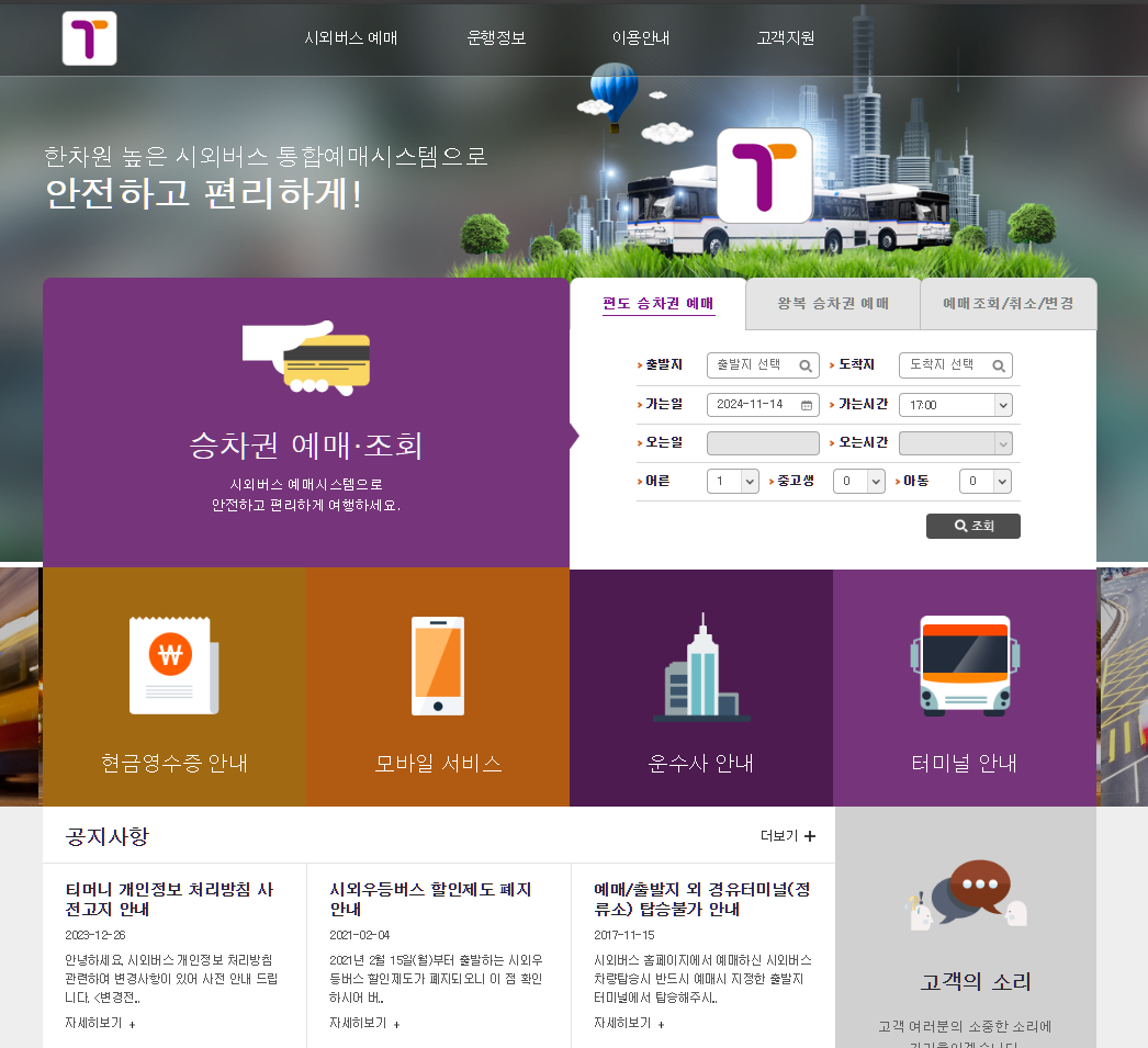전국 시외버스 터미널 시간표, 예약, 요금 조회를 한번에! 티머니 통합 시스템 가이드