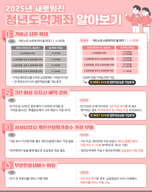 2025.02.13 - [정책지원정보] - 청년내일저축계좌 vs 청년도약계좌 전격 비교! 청년 자산 형성, 어떤 계좌가 나에게 딱 맞을까?