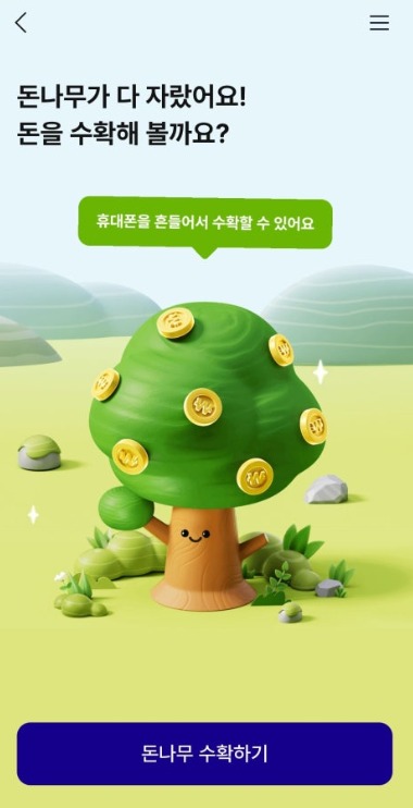 - 매일 '돈나무 키우기' 서비스에 출석 체크하여 돈나무를 성장시키기 시작합니다.