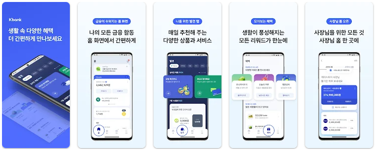- 구글 플레이스토어 또는 애플 앱스토어에서 케이뱅크 앱을 다운로드하고 설치합니다.