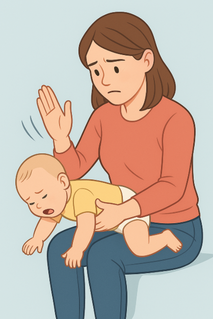 1세 미만 영아 무릎 위에 엎드리게 한 후, 등 두드리기 5회 → 가슴 압박 5회 반복