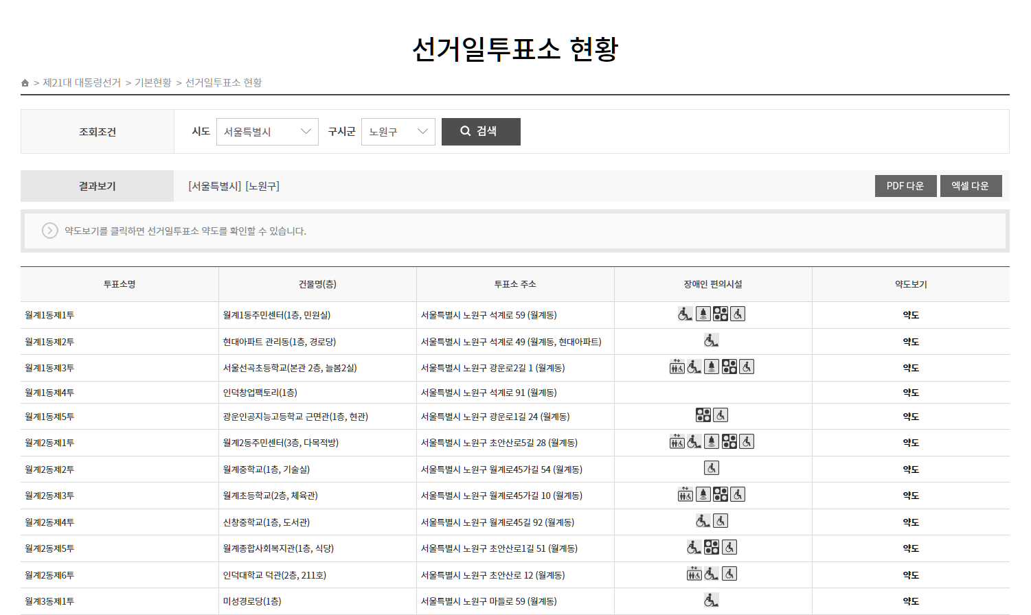 → “노원구 투표소” 검색 후 선관위 링크 클릭