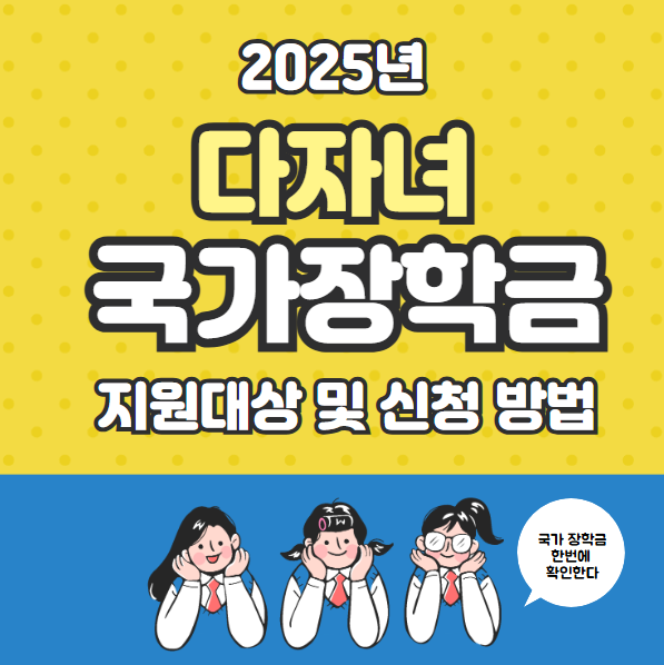 2025년 다자녀 국가장학금 지원 대상 및 신청 안내 다자녀 가구의 등록금 부담을 줄이기 위해 마련된 다자녀 국가장학금은 대한민국 국적을 가진 다자녀 가정의 대학생을 대상으로 지원되는 장학금입니다. 신청 대상, 지원 금액, 신청 방법, 유의 사항 등을 꼼꼼히 살펴보고 혜택을 놓치지 않도록 준비하세요.