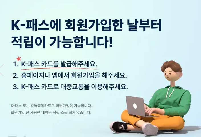 • K패스 공식 앱 또는 웹사이트에 접속하여 회원가입을 진행합니다.