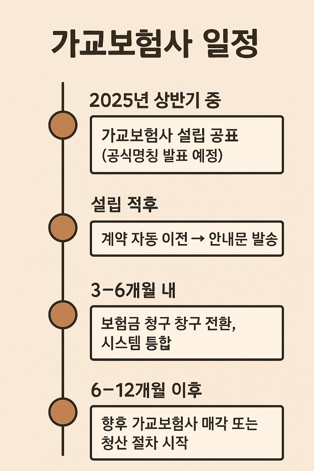 | 2025년 상반기 중 | 가교보험사 설립 공표 (공식명칭 발표 예정) |